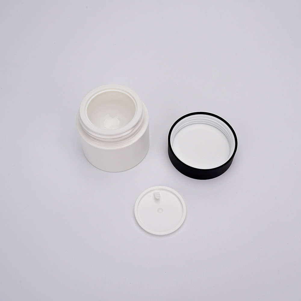 सरल शैली 30g सौंदर्य जार, काली पेंच टोपी के साथ सफेद बोतल, अनुकूलन का समर्थन करता है, और मुफ्त नमूना प्रदान करता है।
