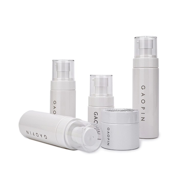 सफेद त्वचा देखभाल किट।पर्यावरण के अनुकूल सामग्री, रंगहीन और बेस्वाद, को पुनर्नवीनीकरण किया जा सकता है।सर्पिल बोतल मुंह, आसान डालना, अच्छी सीलिंग।