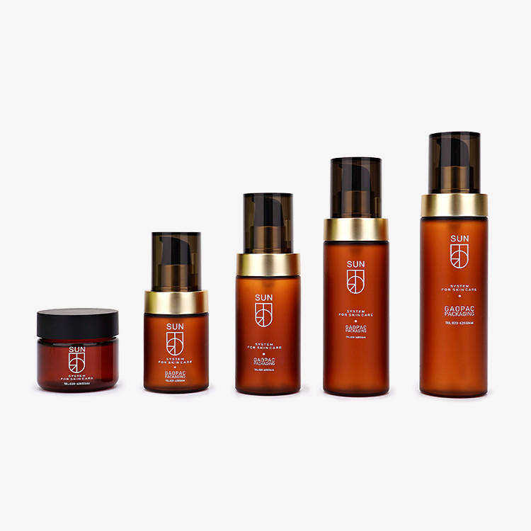 त्वचा देखभाल उत्पाद सेट, एम्बर बेलनाकार।ले जाने में आसान, विरूपण के लिए आसान नहीं, टिकाऊ।सर्पिल बोतल मुंह, डालना आसान।पर्यावरण के अनुकूल सामग्री जो रीसाइक्लिंग का समर्थन करती है