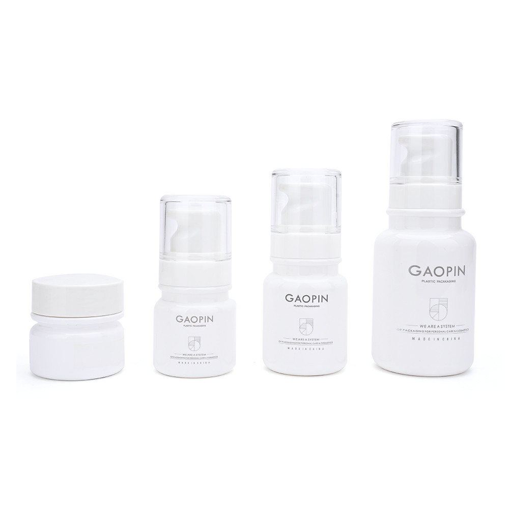 एक क्रीम कैन, तीन इमल्शन पंप की बोतलों सहित स्किनकेयर उत्पाद की पैकेजिंग की बोतलें। इसका उपयोग पैकेजिंग क्रीम, आई क्रीम, आवश्यक तेल, लोशन, बॉडी मिल्क, फेशियल क्लींजर, आदि के लिए किया जा सकता है। अलग-अलग मिलने के लिए मल्टी-टाइप और मल्टी-फंक्शन यात्रा की जरूरत है। इमल्शन पंप, प्रेस करने में आसान, वर्दी आउटपुट, कोई स्पलैश नहीं।