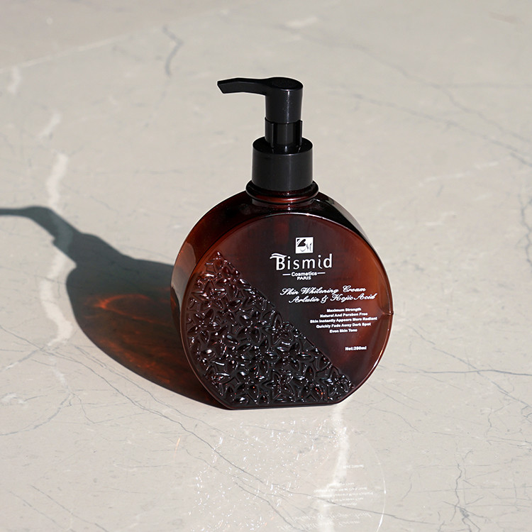 250 मिलीलीटर एम्बर पंप पीईटीजी बोतल बॉडी मिल्क स्किन केयर पैकेजिंग प्लास्टिक लोशन बोतल