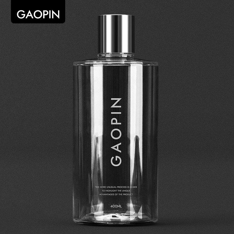 पारदर्शी बेलनाकार आकार के शैम्पू की बोतल, पीईटी सामग्री, कोमल स्पर्श।