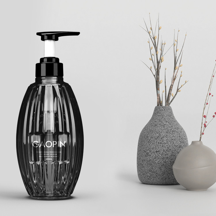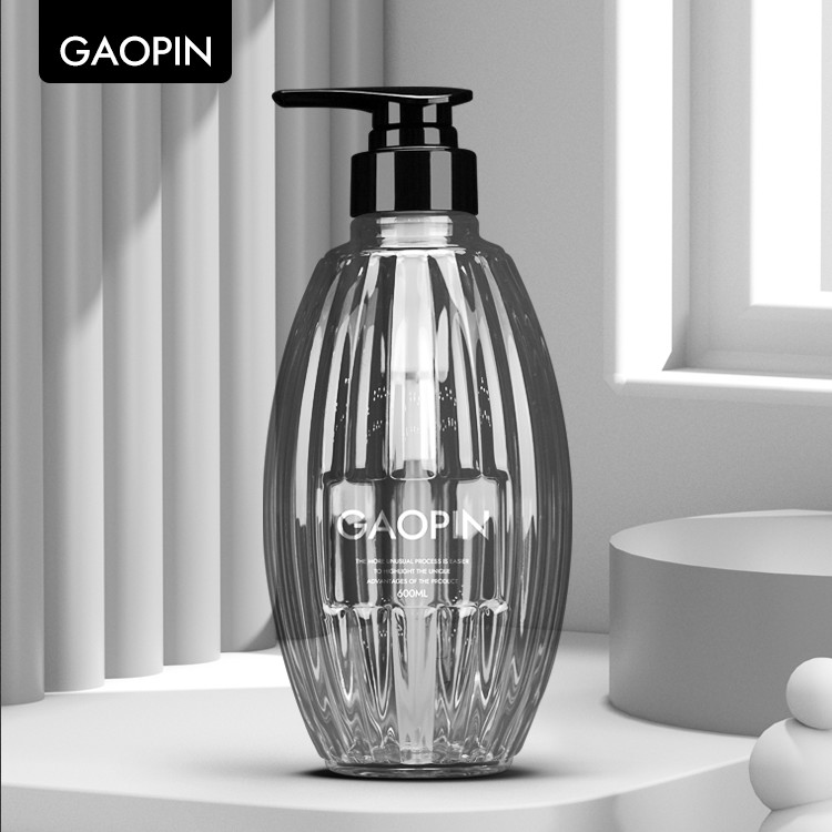 पारदर्शी बेलनाकार आकार के शैम्पू की बोतल, पीईटी सामग्री, कोमल स्पर्श।