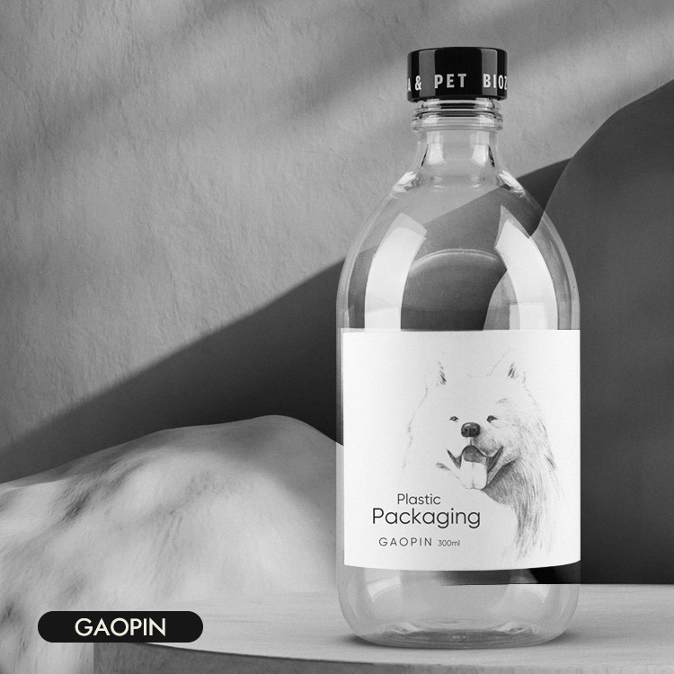 पारदर्शी बेलनाकार आकार के शैम्पू की बोतल, पीईटी सामग्री, कोमल स्पर्श।
